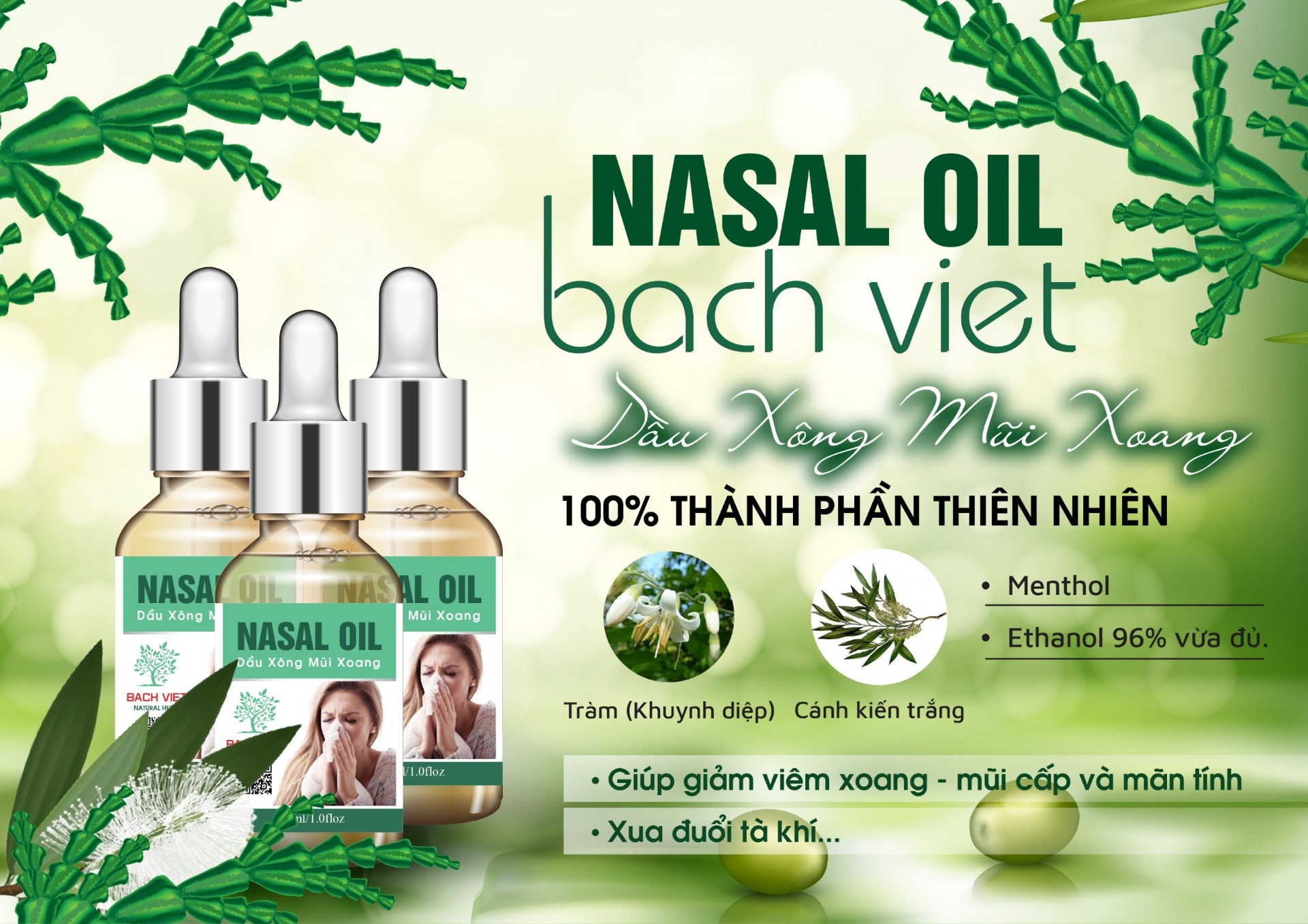 Tràm (Khuynh diệp), Cánh kiến trắng, Menthol, Ethanol 96%